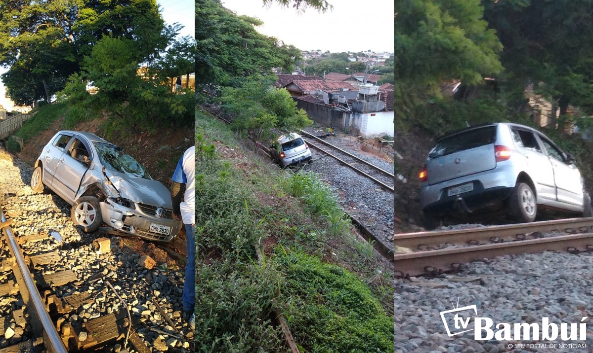 Um homem, uma jovem e uma criança, ambos de idade não informada, ficaram feridos após o veículo que eles estavam cair sobre a linha férrea, na tarde desta segunda-feira (18), na escadaria do Disque Cerveja Escadinha, no cruzamento das ruas Francelino C. Ribeiro e Goiás, no Bairro Centro, em Bambuí.