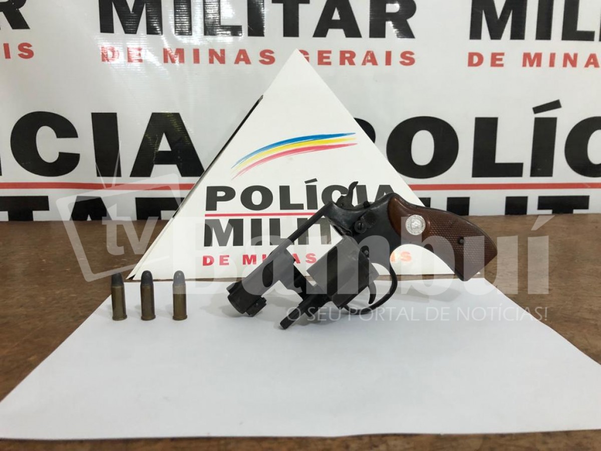 Rapidamente a equipe policial se deslocou e durante a busca pessoal, encontrou na cintura do suspeito um revólver calibre 32, contendo três munições intactas. Informações davam conta que no dia anterior ele teria efetuado disparos na porta da casa da vítima, ameaçando-a de morte.