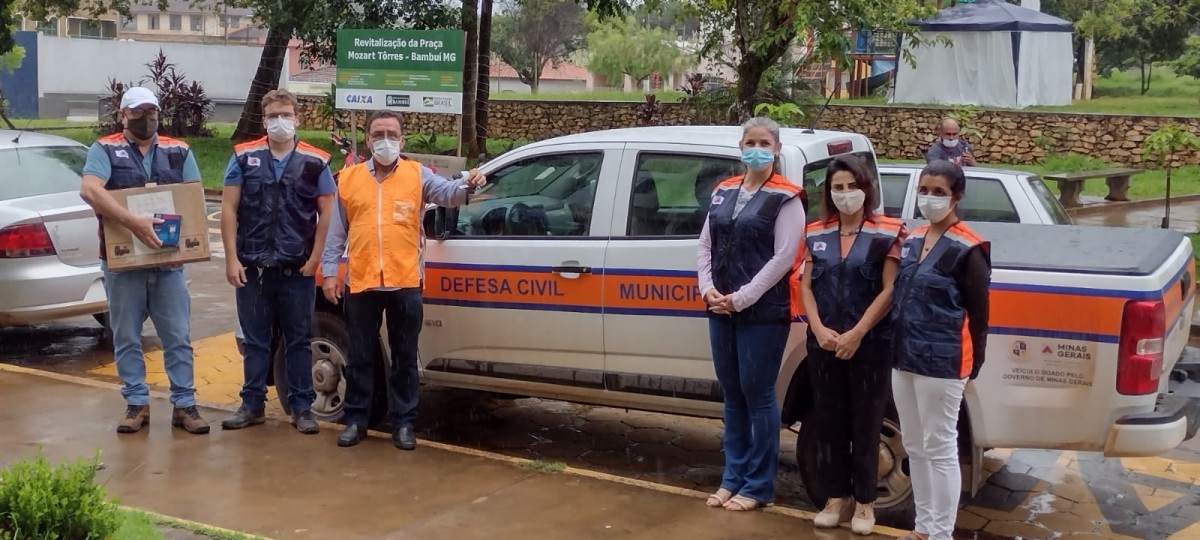 Compõe o KIT Básico da Defesa Civil, uma camionete 4x4, um notebook, uma trena a laser e coletes de identificação e proteção. O KIT foi conquistado a partir de ações realizadas pela Defesa Civil Municipal que pontuaram com as exigências do Estado, classificando o município de Bambui em 71º colocação em nível Estadual e em 1º lugar no regional. Méritos pelo trabalho executado.