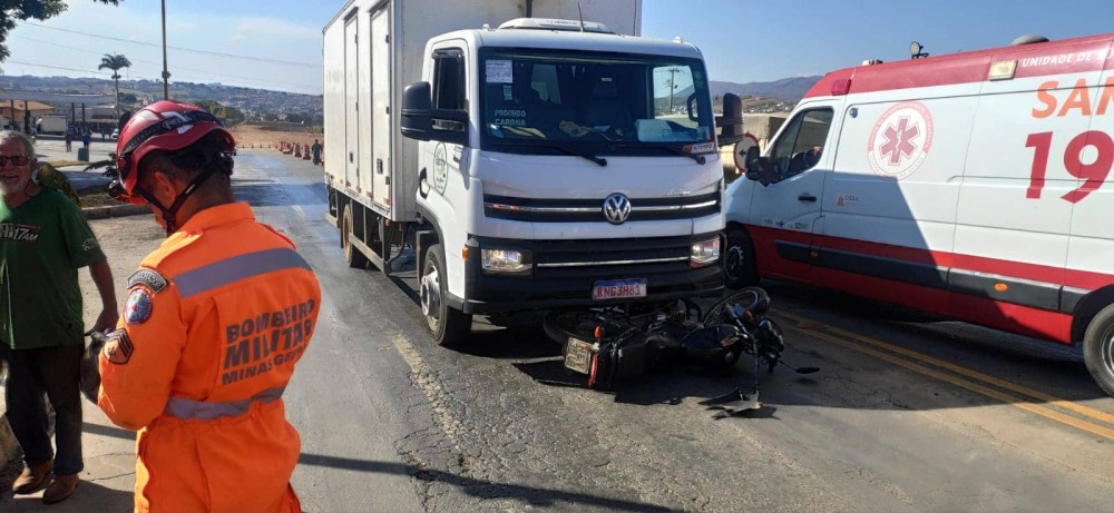 Acidente entre moto e caminhão deixa vítima ferida na MG-050 em Piumhi