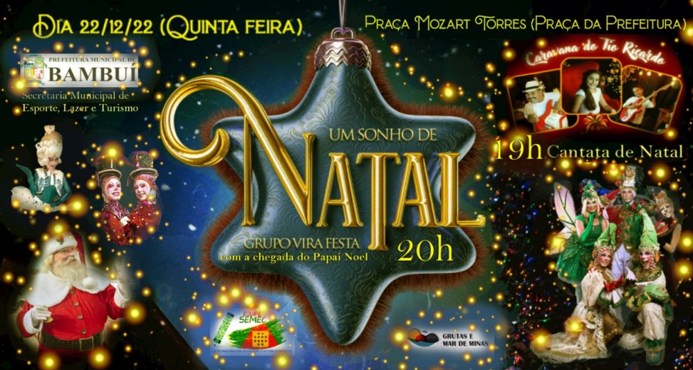 A partir das 19 horas do dia 22 começará a concentração para receber o Papai Noel com uma Cantata de Natal com Ricardo Vítor. Às 20 horas Um Sonho de Natal vai se transformar em realidade com a chegada do Papai Noel, com o Grupo Mira Festa.