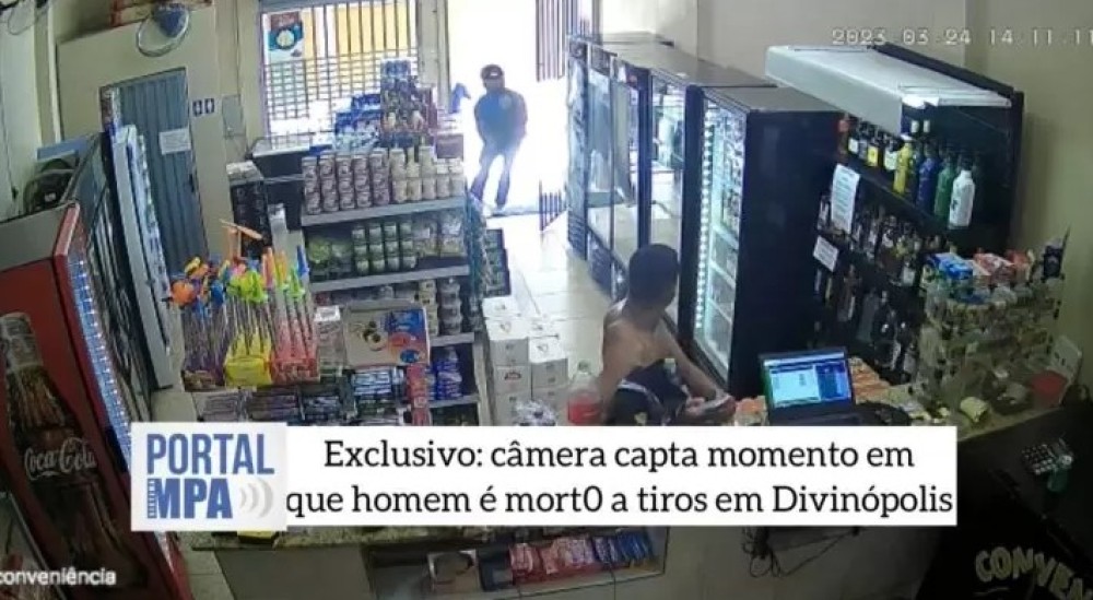 As câmeras se segurança flagraram o momento em que Alexander Sabadini, de 27 anos, é assassinado com 30 tiros em uma loja de conveniência no bairro Davanuze, em Divinópolis. Dois homens com capacete e duas armas atiraram no rapaz, que faleceu no local.