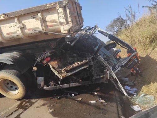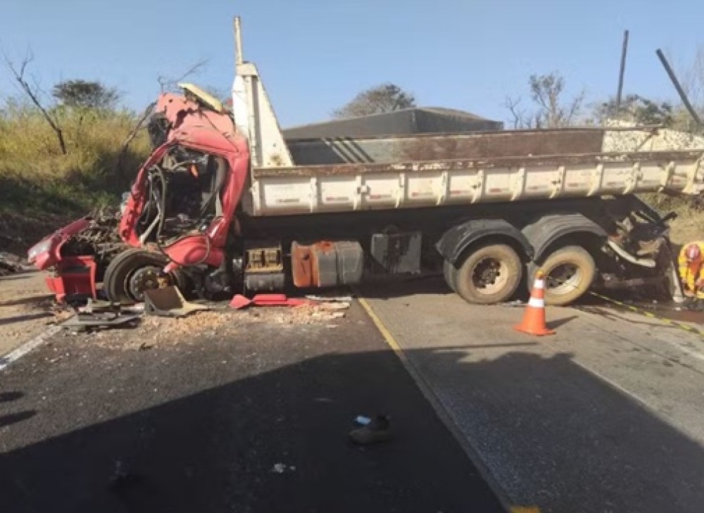Caminhões ficam destruídos e dois motoristas se ferem gravemente após batida na BR-262