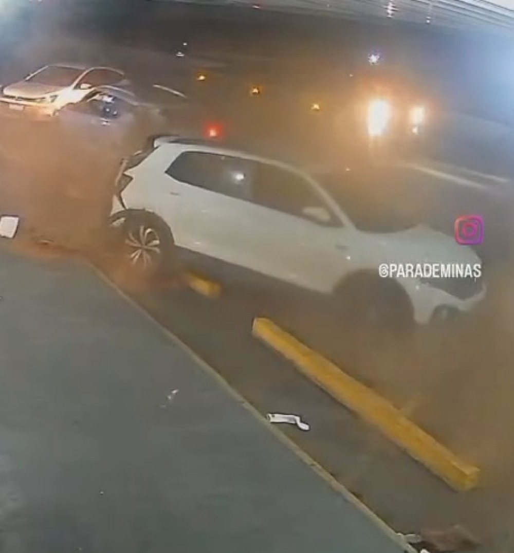 Uma câmera de segurança registrou um grave acidente no estacionamento de um posto de combustíveis. Um carro desgovernado invadiu o estacionamento do posto Juá, em Juatuba-MG e bateu em outros dois veículos. O acidente aconteceu na noite de domingo (19). O Samu informou que a equipe da Unidade de Suporte Básico (USB) de Juatuba fez o atendimento de um homem, sem idade identificada. Estava inconsciente, em estado grave. Recebeu os primeiros atendimentos e foi encaminhado para o Hospital Regional de Betim.