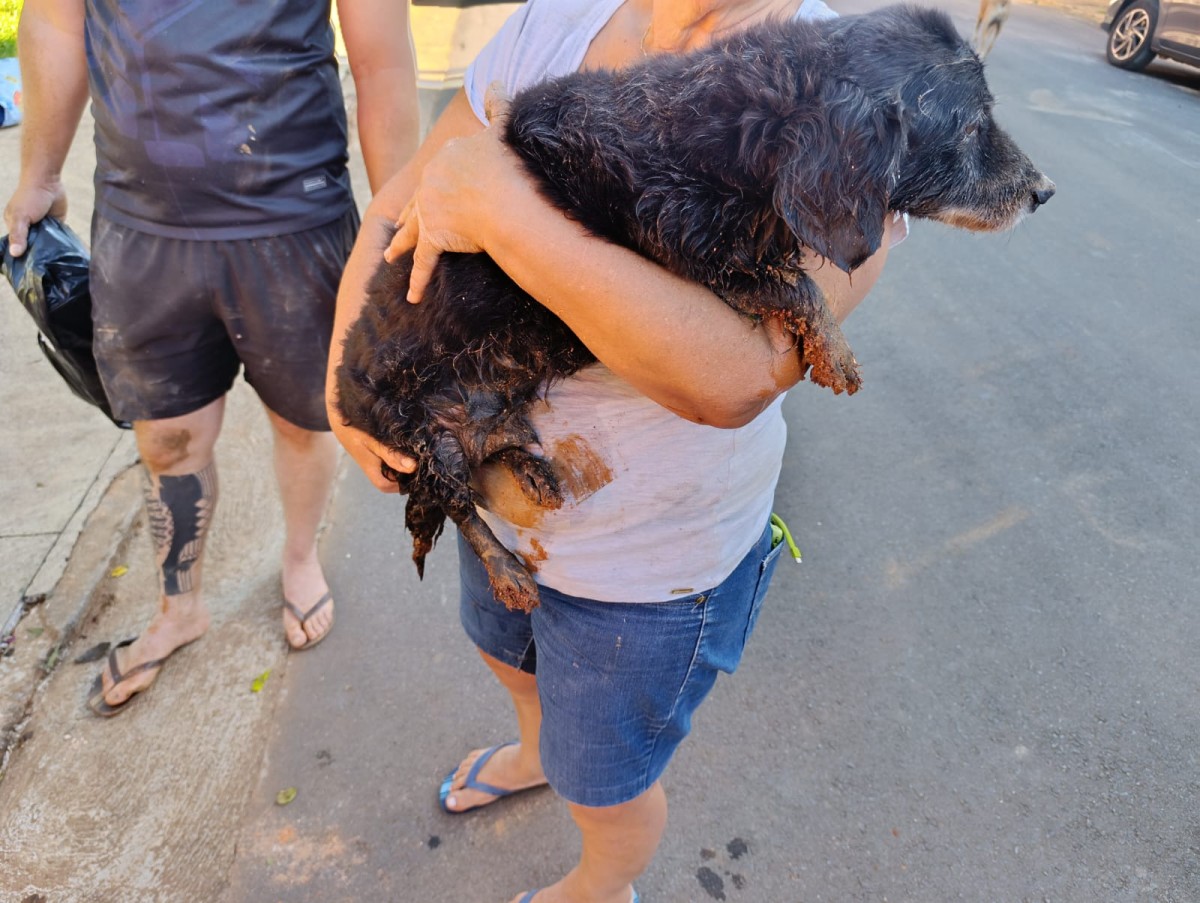 No local, um cachorro havia caído no interior de uma manilha subterrânea, ficando preso. Antes da chegada dos bombeiros, equipes da Prefeitura Municipal, com o apoio de voluntários, já atuavam na tentativa de acesso ao animal, utilizando uma retroescavadeira para a abertura da estrutura.