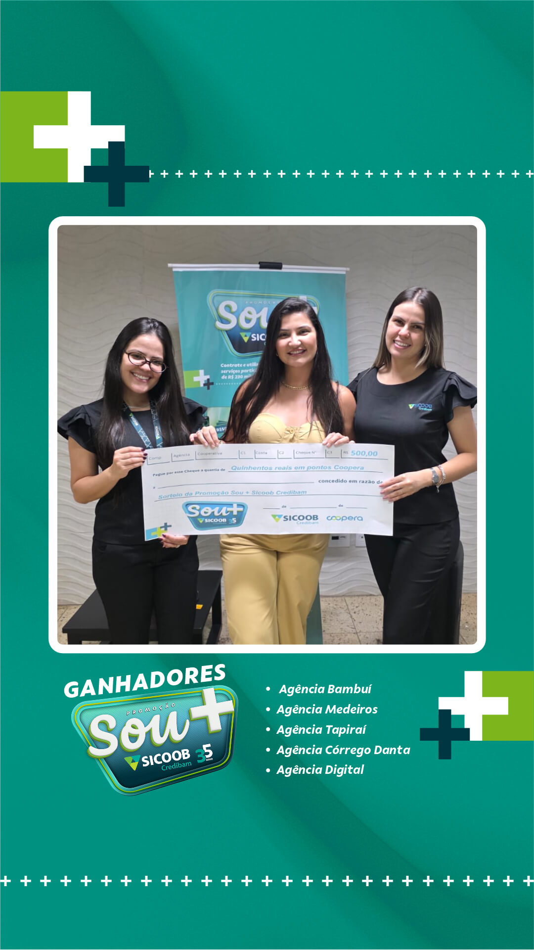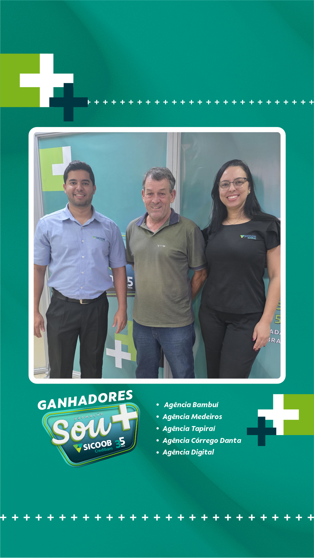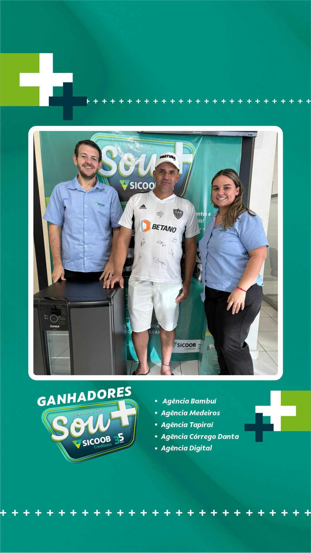 Neste primeiro sorteio, foram premiados cooperados das cidades de atuação da cooperativa: Bambuí, Medeiros, Tapiraí e Córrego Danta, além de participantes vinculados à Agência Digital. A entrega dos prêmios foi realizada diretamente pelas equipes das unidades, nos respectivos municípios.