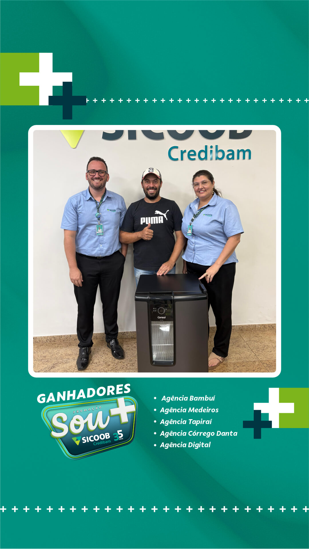 Sicoob Credibam entrega prêmios do primeiro sorteio da campanha de 35 anos